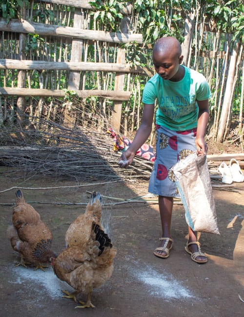 Soon, the group had enough money to purchase two chickens for each child. The kids care for the chickens and sell the eggs at the market, continuing to increase the savings of the group. Together, Sifa and her peers decide on priorities to solve their problems, as well as those of the community — especially caring for the needs of their most vulnerable neighbors.