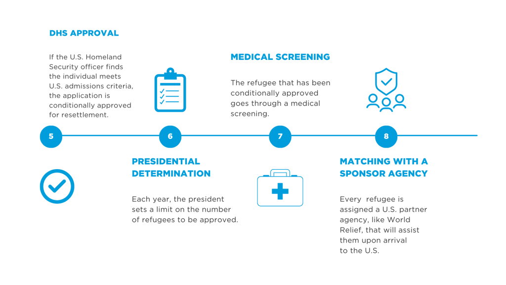 With that history, consider resettlement from the milestone of receiving official refugee status to arrival in the U.S.